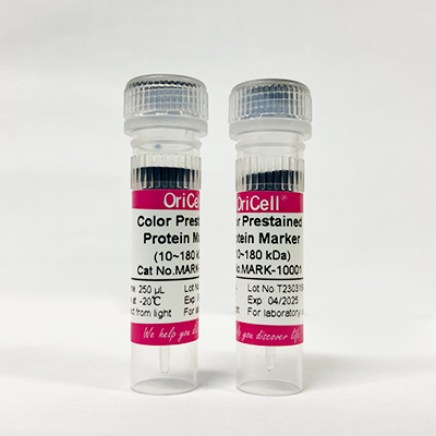 彩色预染蛋白Marker由纯化后的蛋白混合而成,可用于电泳、转膜时直接观察评估电泳过程、转膜效率等,彩色预染Marker已成为SDS-PAGE电泳和WB检测过程中不可或缺的工具之一。