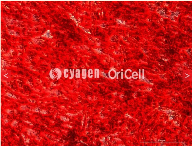 结果观察:成功的染色结果具有极高的辨识度:细胞质内出现圆形或椭圆形的亮红色颗粒,边界清晰。成脂分化